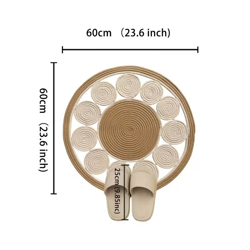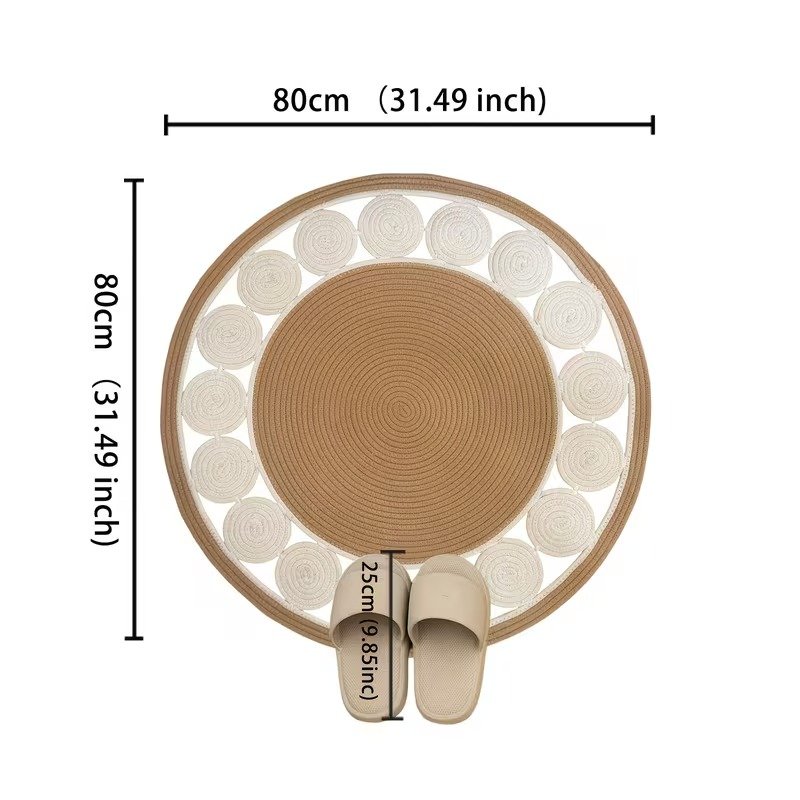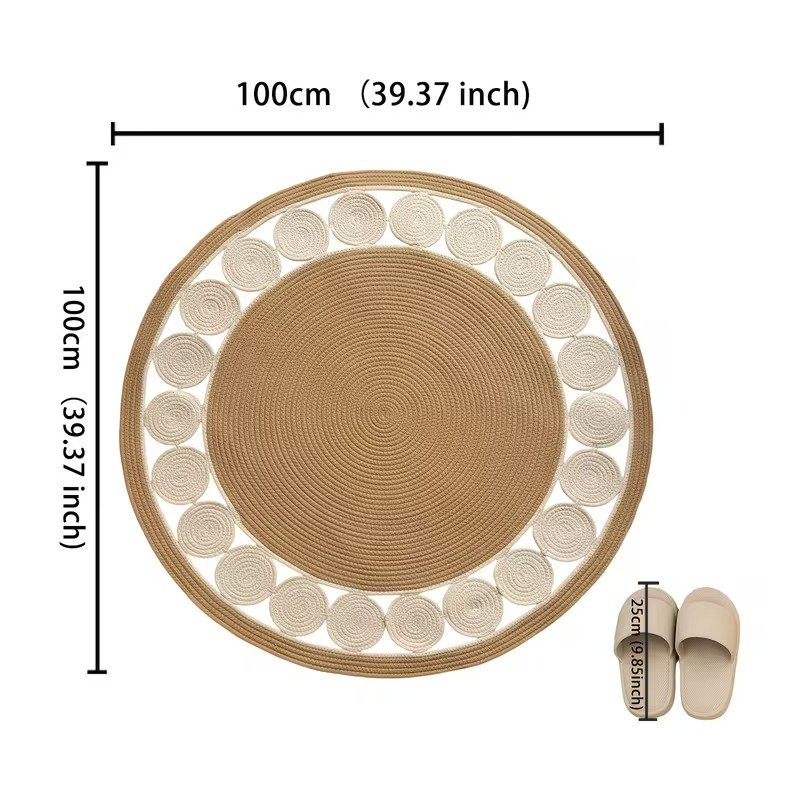 Add warmth and texture to your space with this handmade round jute/cotton rope rug featuring a beautiful layered circle pattern. Perfect for living rooms, bedrooms, nurseries, and cozy corners.