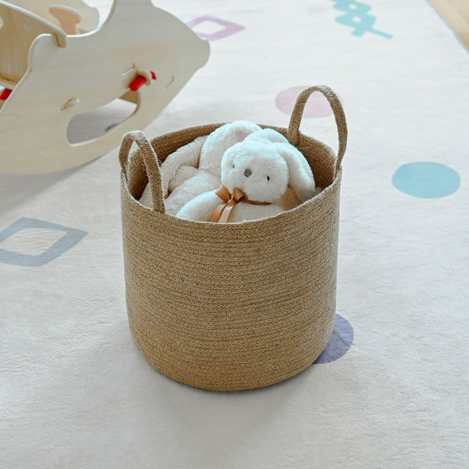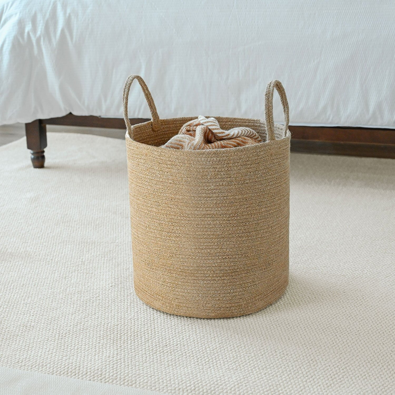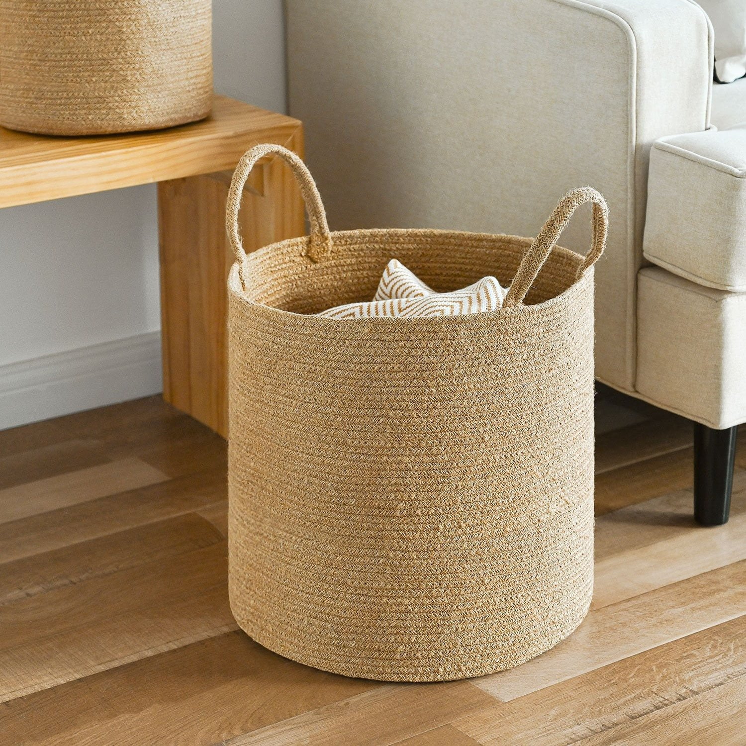 ✔ Jute laundry basket with handles