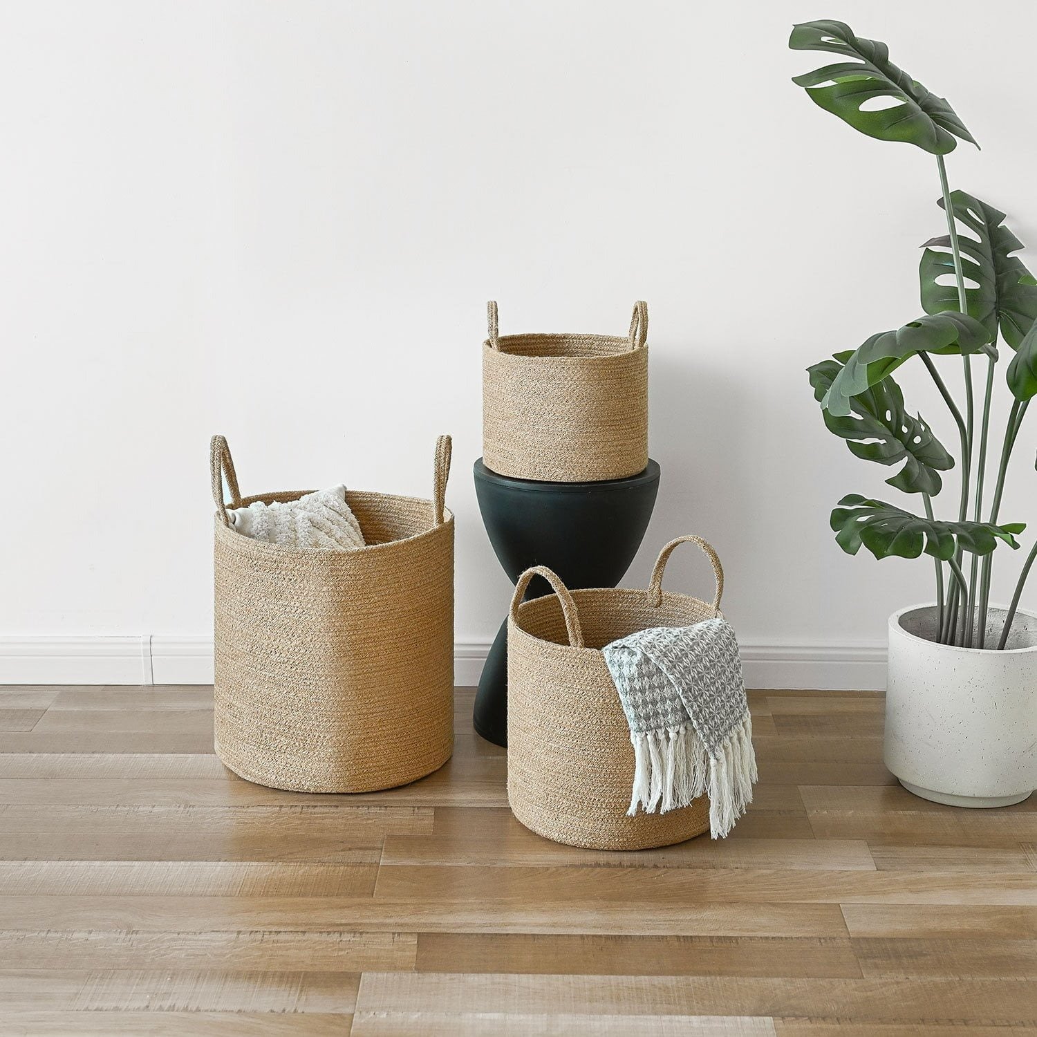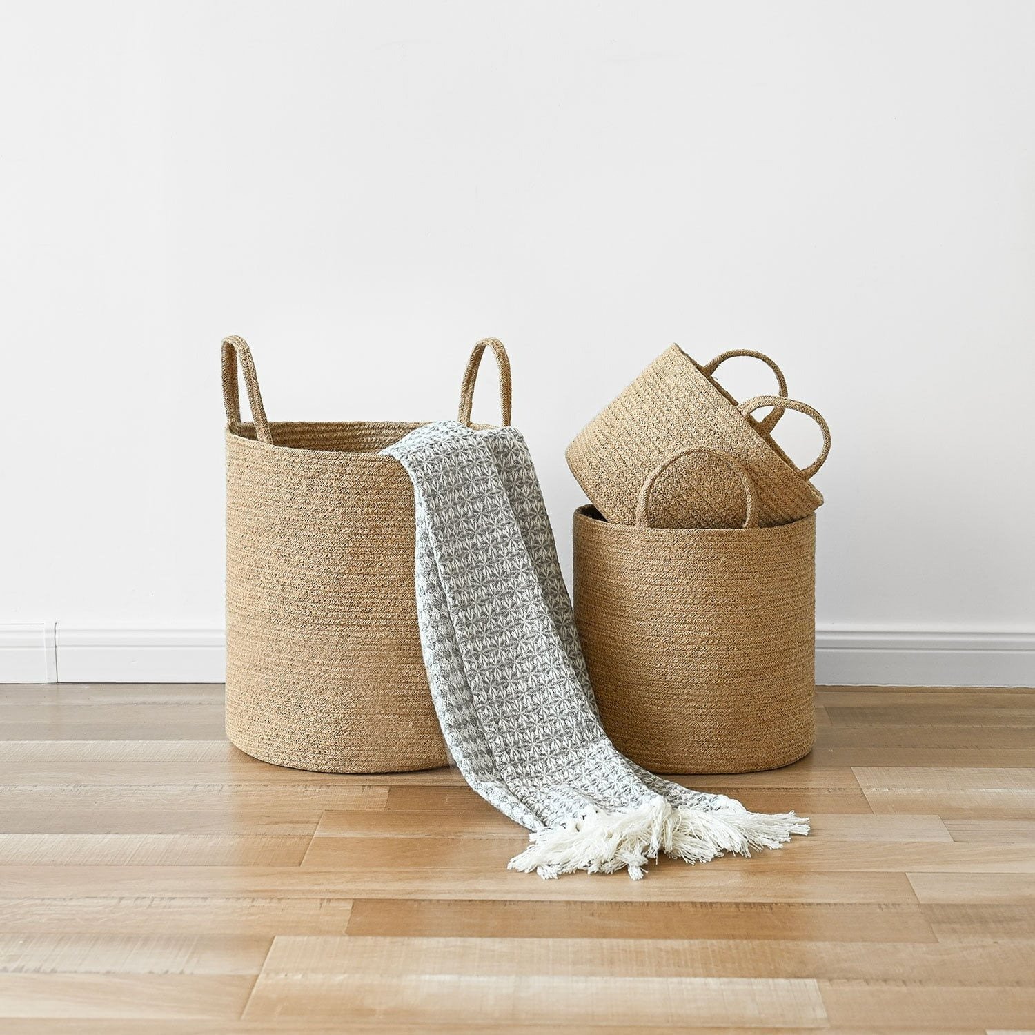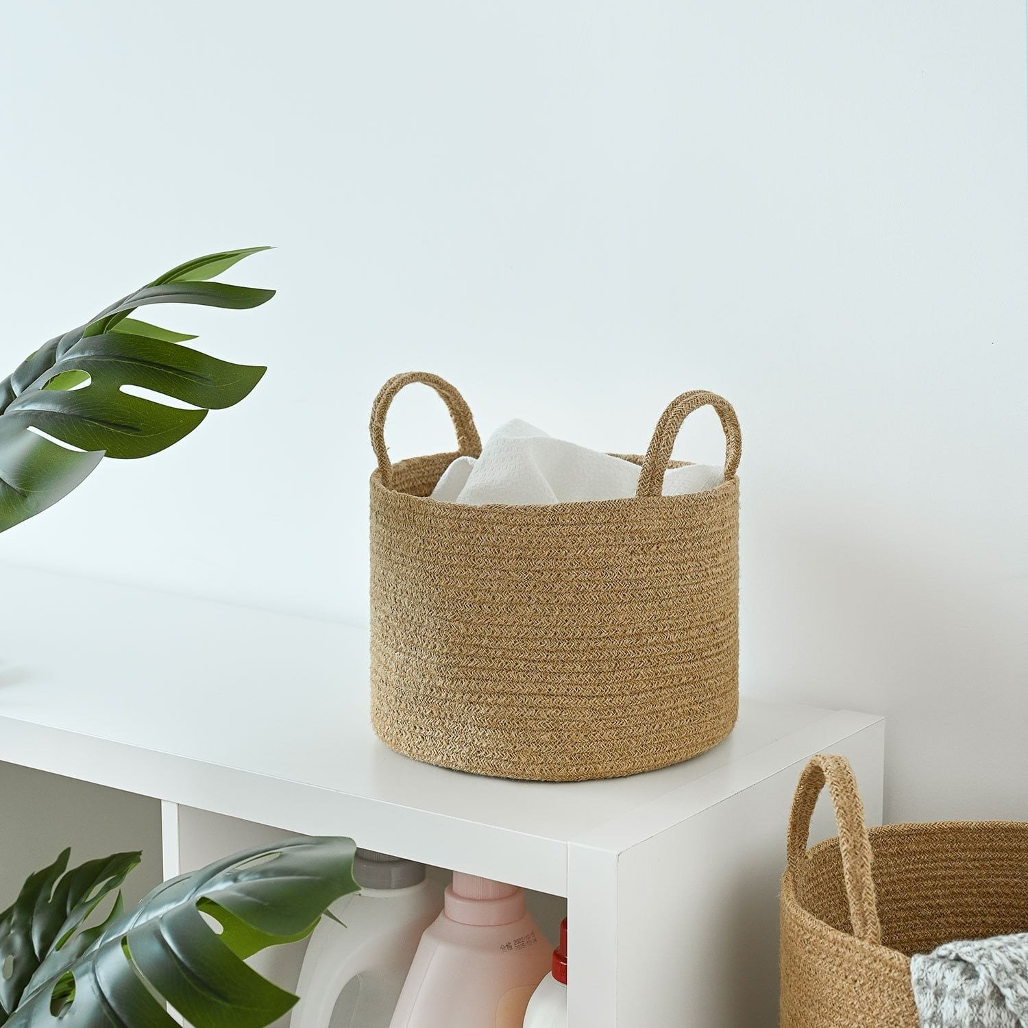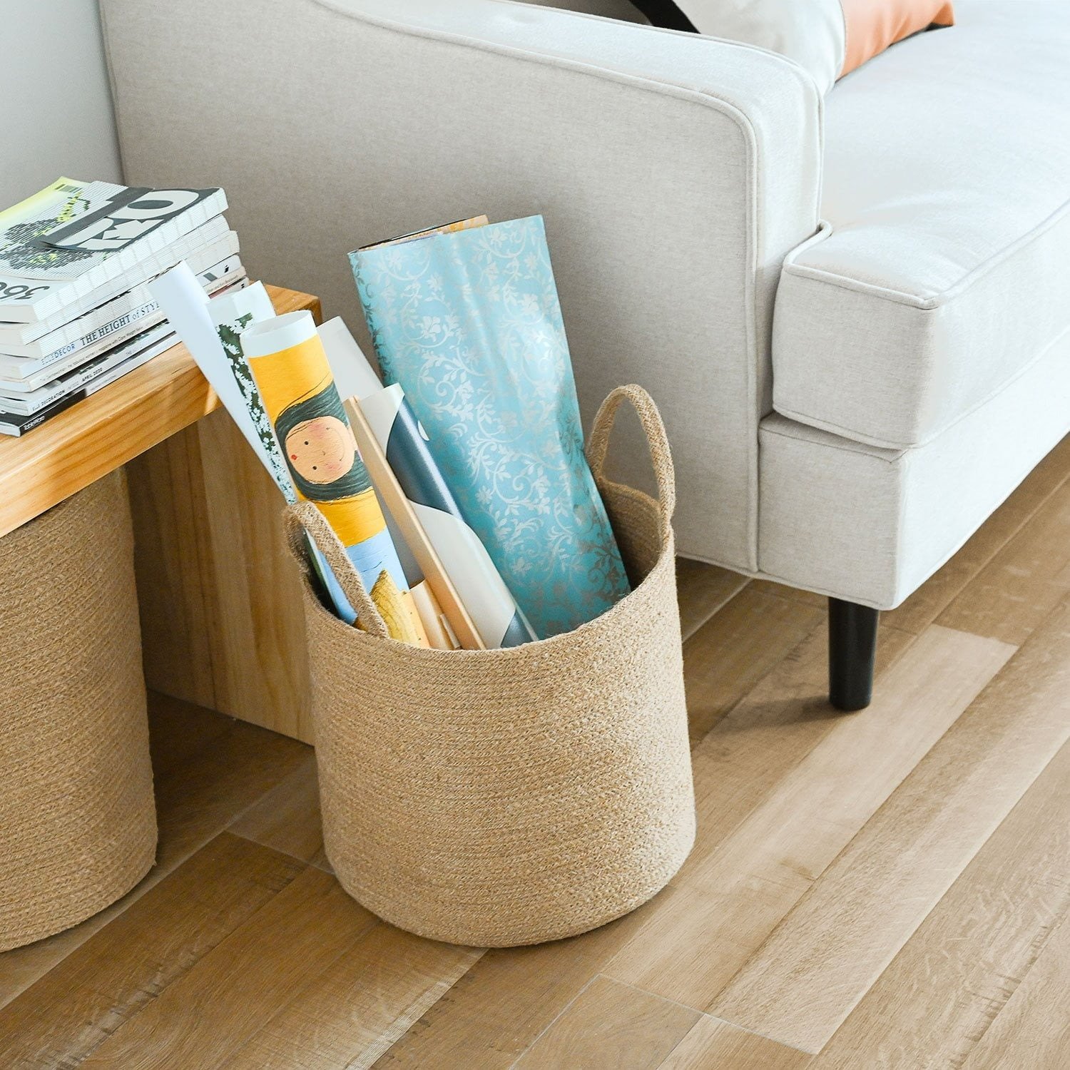 ✔ Jute laundry basket with handles